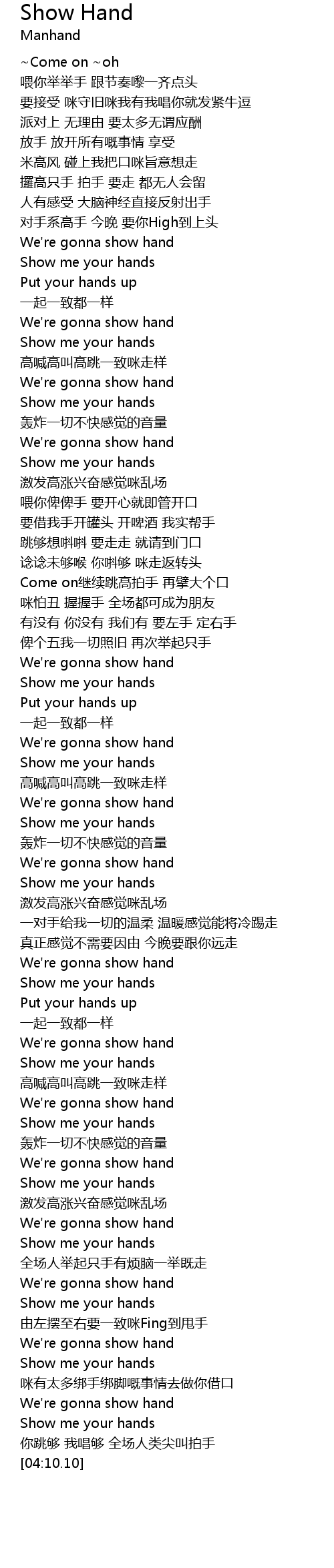 | [03:46.92] | 全场人举起只手有烦脑一举既走 |