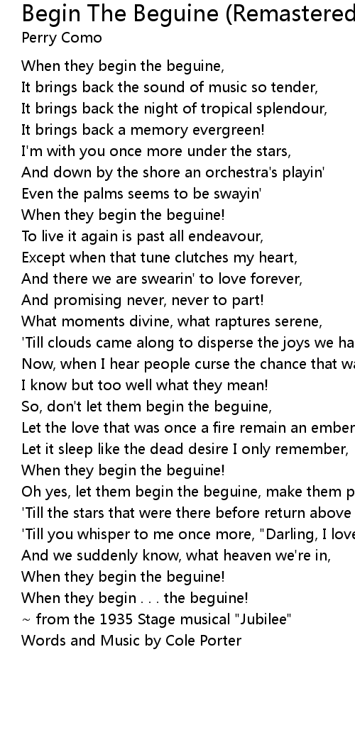 Oh yes, let them begin the beguine, make them play! |