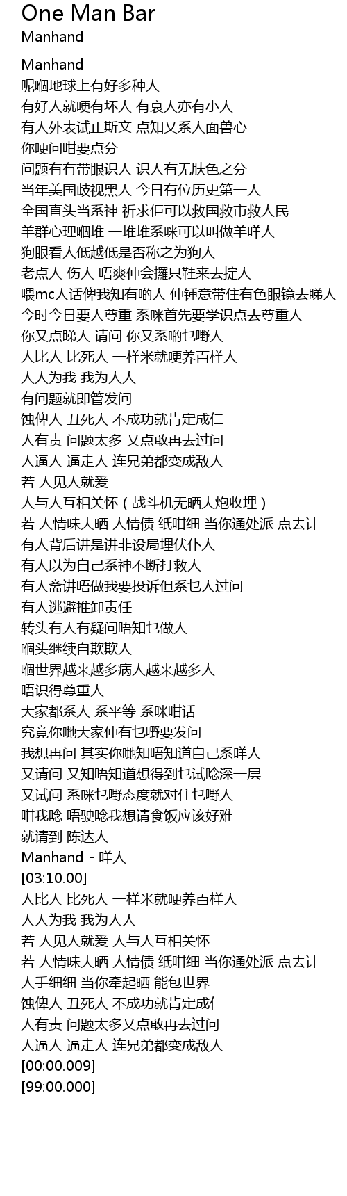 | [00:43.57] | 呢嗰地球上有好多种人 |