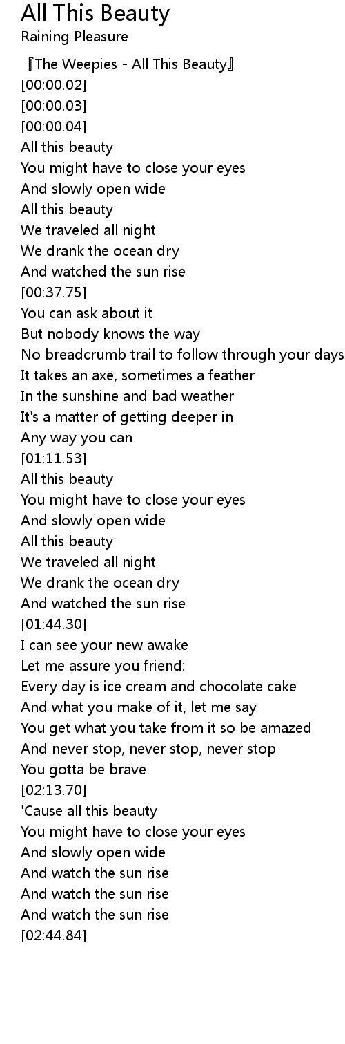 | [02:14.60] | ' Cause all this beauty |