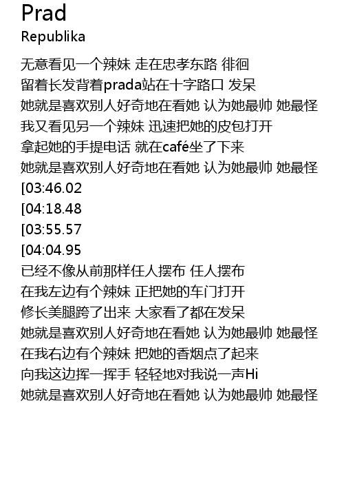 | [04:34.30][04:04.95][01:44.92] | xian zai de nv hai yi jing bu xiang cong qian na yang ren ren bai bu ren ren bai bu |
