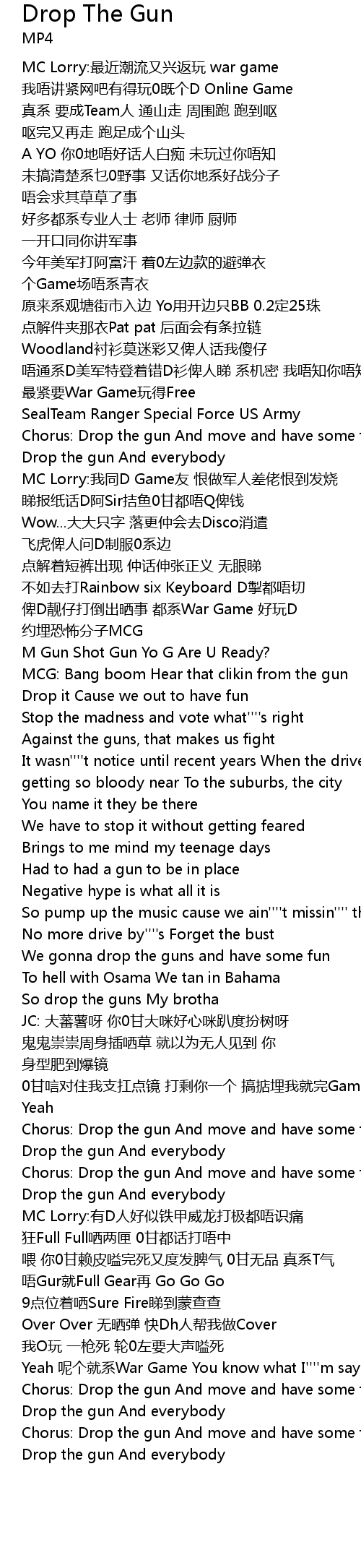 | [02:44.56] | Chorus: Drop the gun And move and have some fun |