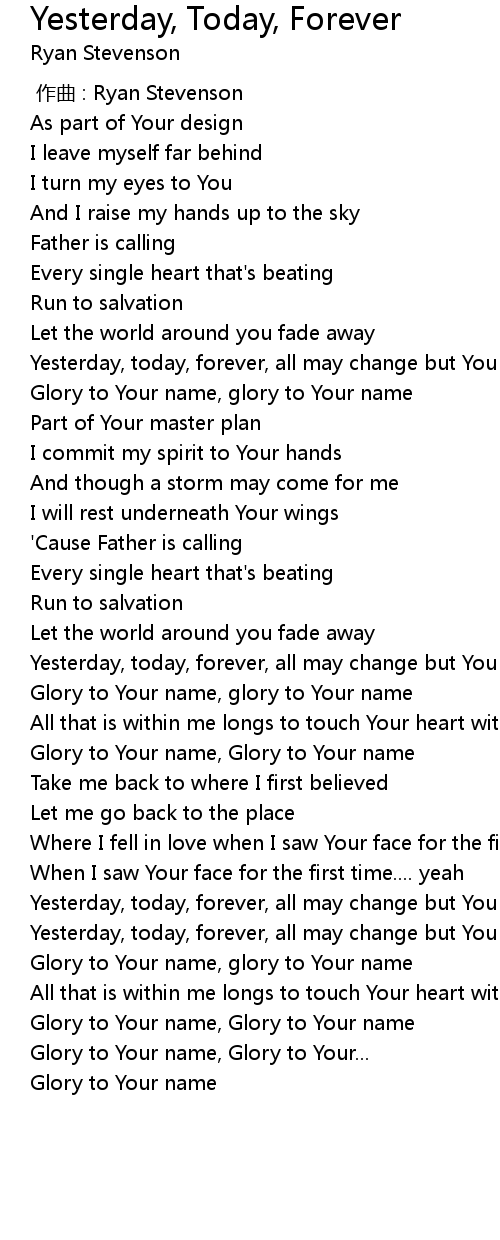 | [02:48.516] | Yesterday, today, forever, all may change but You will never |