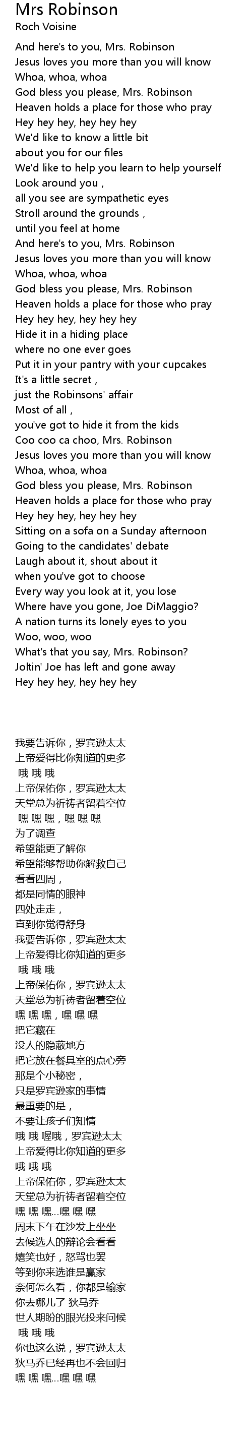 | 歌曲 | Mrs Robinson |
