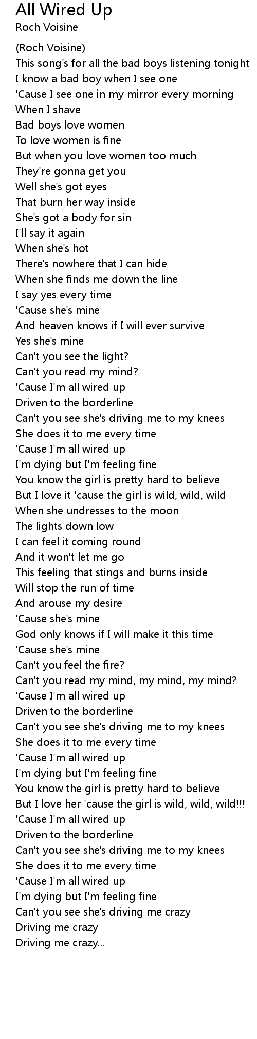 'Cause I'm all wired up |