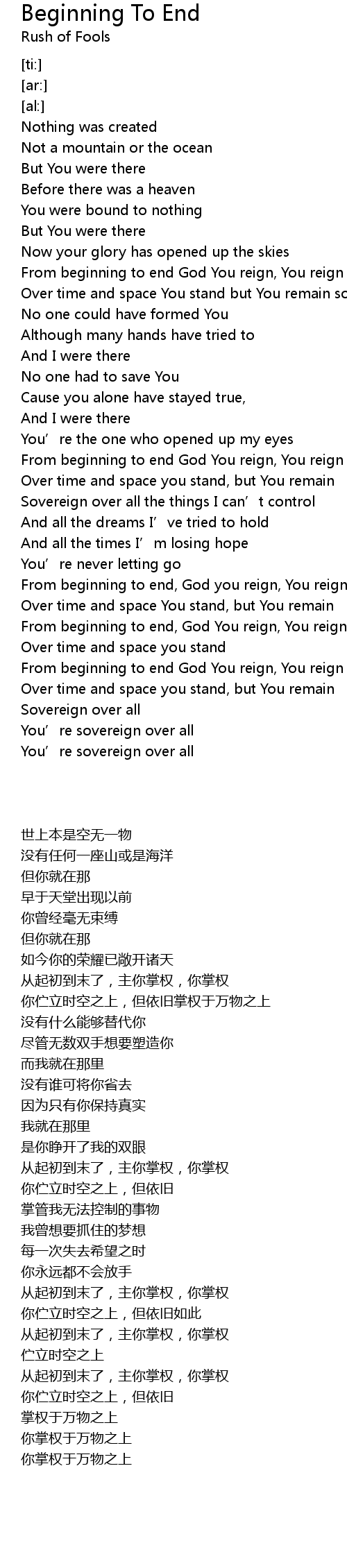 | [00:33.03] | From beginning to end God You reign, You reign |
