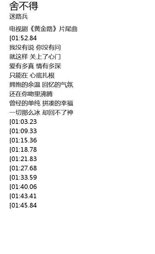 | [00:06.00] | 电视剧《黄金路》片尾曲 |