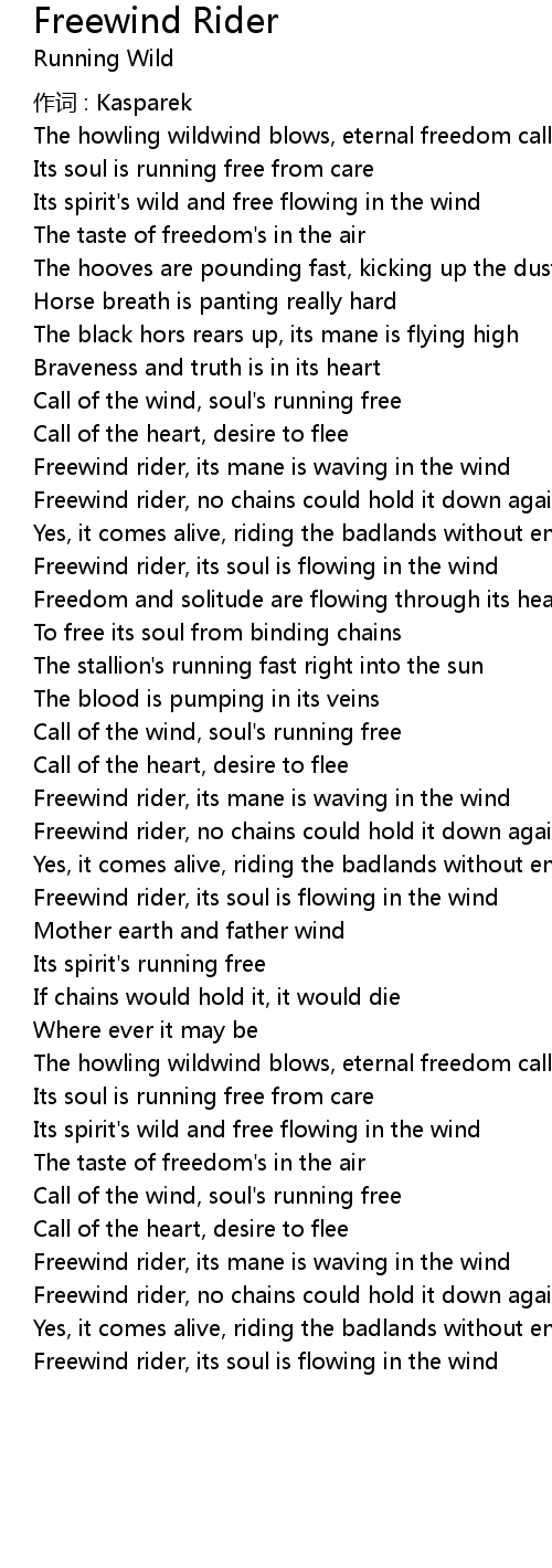 | Freewind rider, its soul is flowing in the wind |