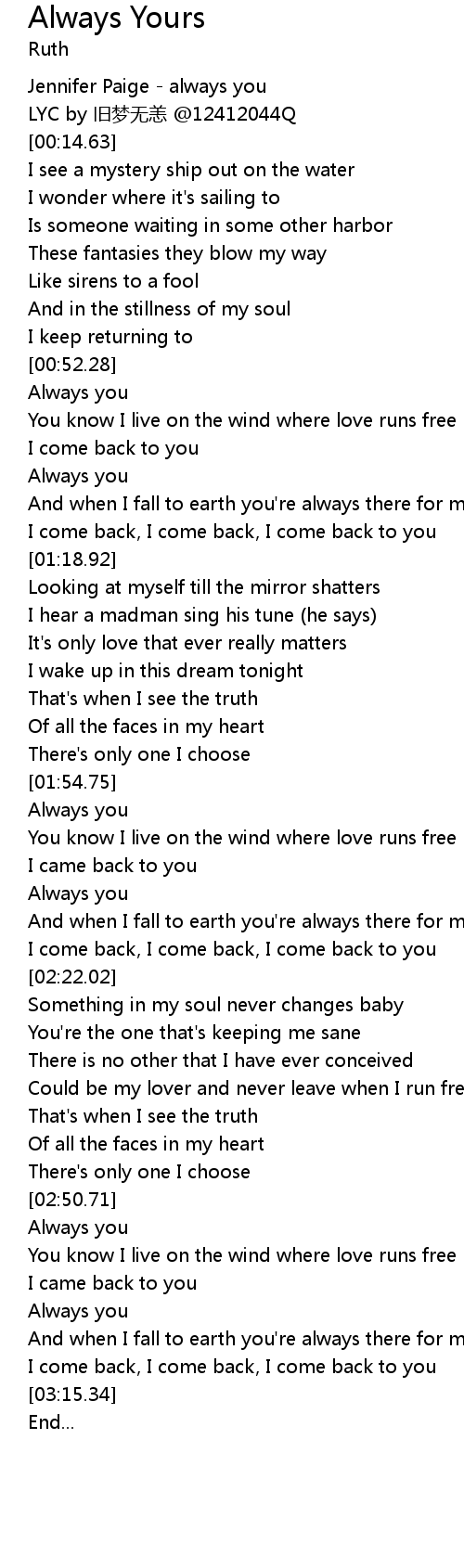 | [00:00.00] | Jennifer Paige - always you |