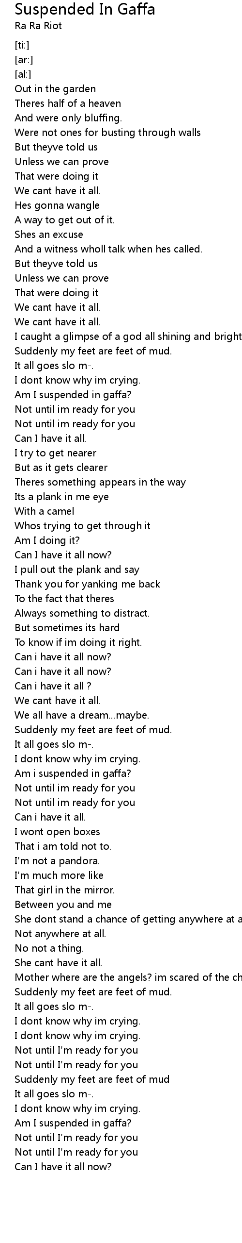 Am i suspended in gaffa? |