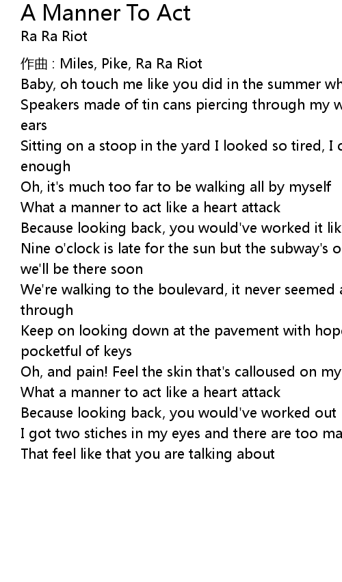 | 作曲 : Miles, Pike, Ra Ra Riot | |