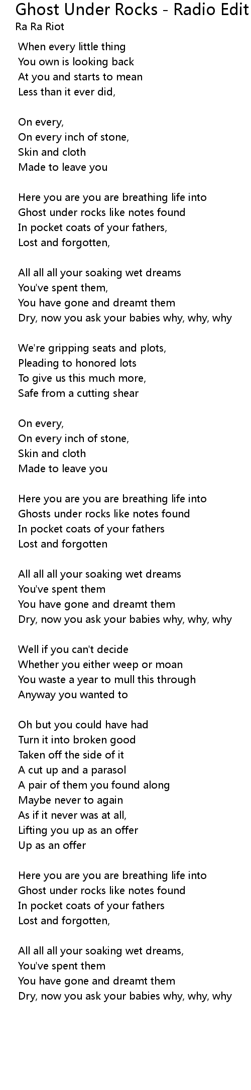 | 歌曲 | Ghost Under Rocks - Radio Edit |