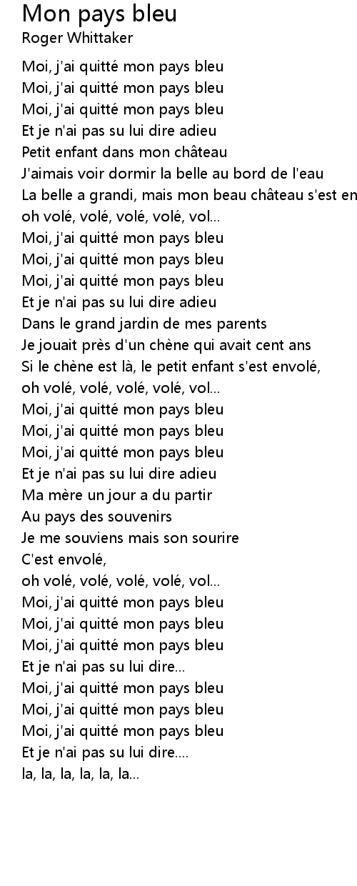 | 歌曲 | Mon pays bleu |