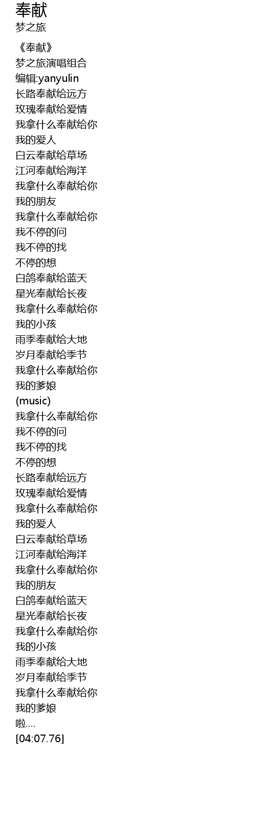 | [00:00.00] | 《奉献》 |