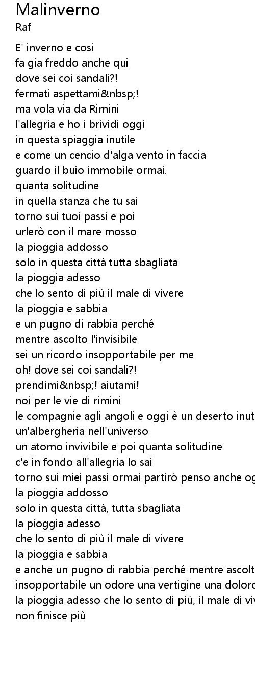 | la pioggia adesso che lo sento di piu, il male di vivere la pioggia addosso, non finisce piu |