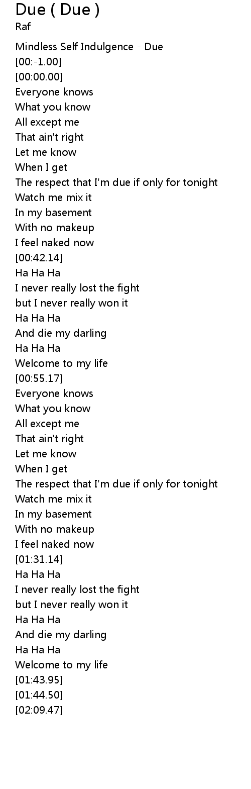| [00:52.57] | Welcome to my life |