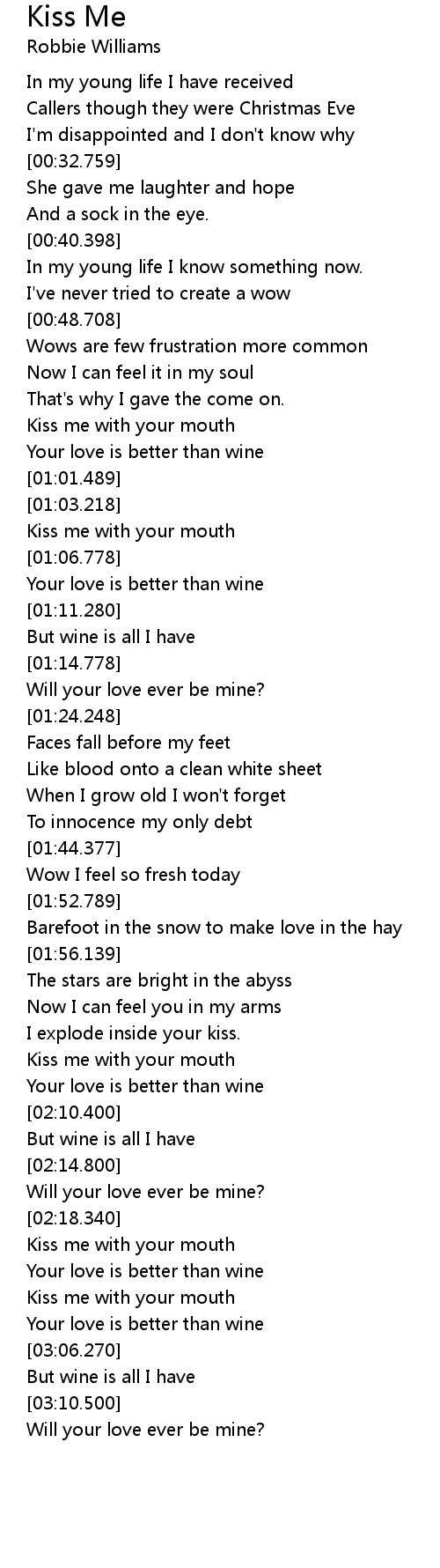 | [01:04.998] | Kiss me with your mouth |