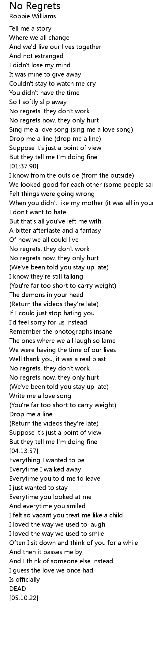 No regrets now, they only hurt |