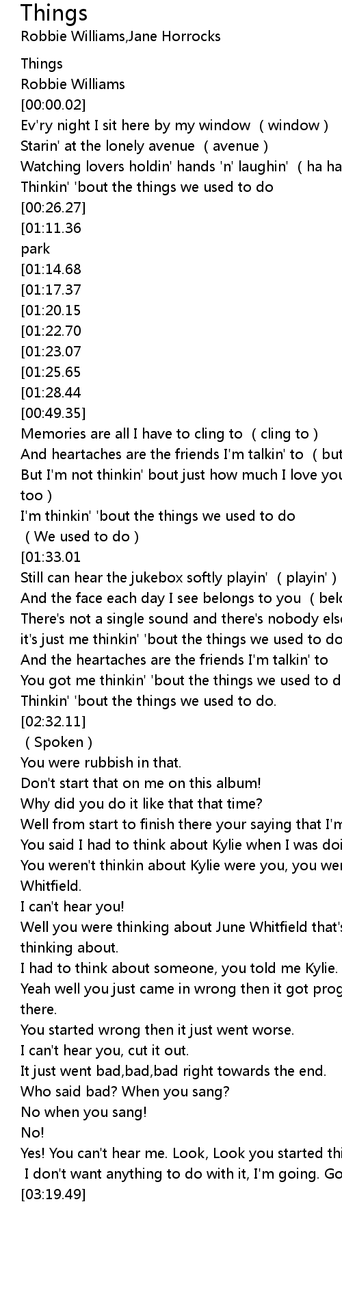 | [02:09.52][01:25.65][00:41.91] | Things that we don' t do now |
