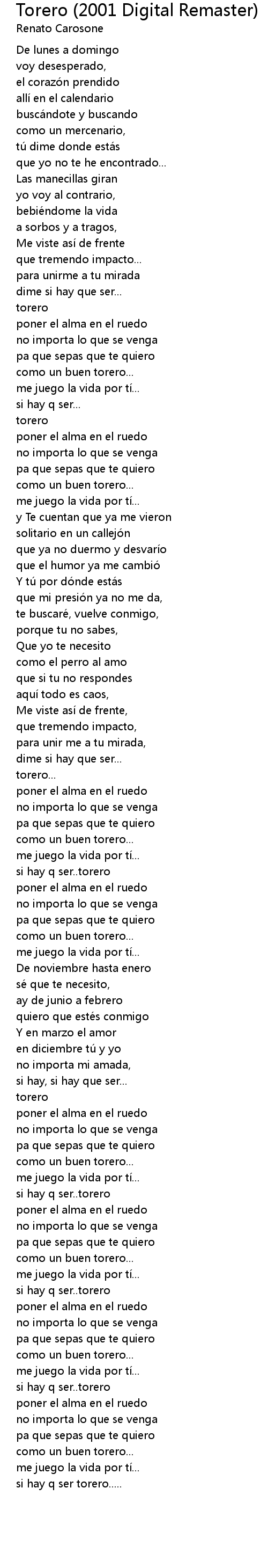 | 歌曲 | Torero (2001 Digital Remaster) |