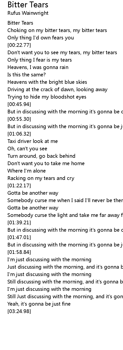 Don't want you to see my tears, my bitter tears |