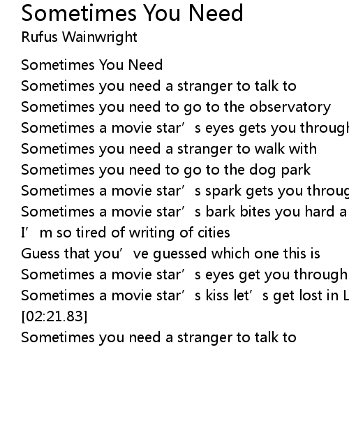 | [03:02.14] | Sometimes you need a stranger to talk to |