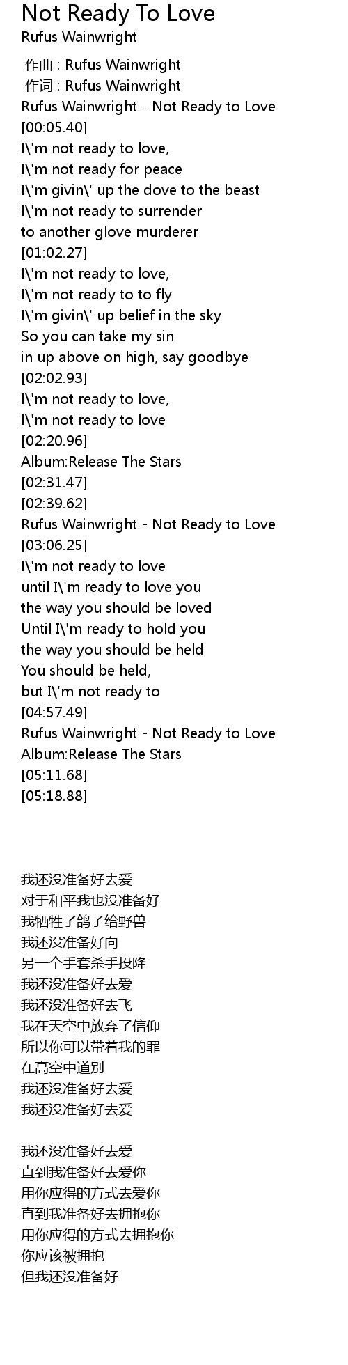 | [00:01.33] | Rufus Wainwright - Not Ready to Love |