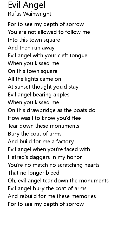 Oh, evil angel tear down the monuments |