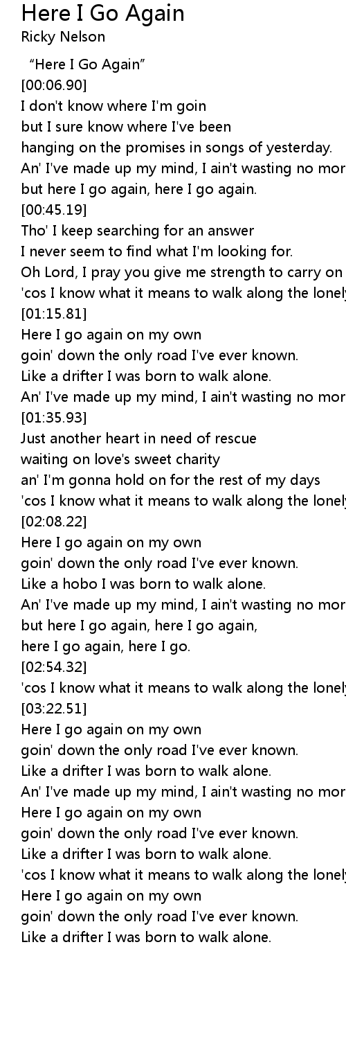 | [02:19.87] | Like a hobo I was born to walk alone. |