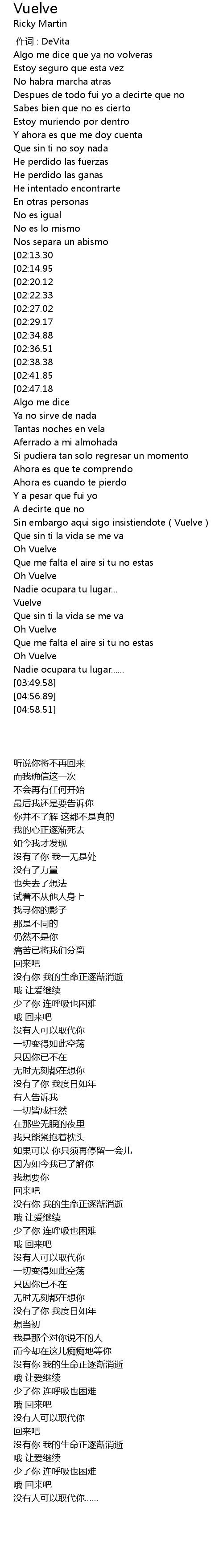| [01:25.19][02:27.02] | Oh Vuelve |