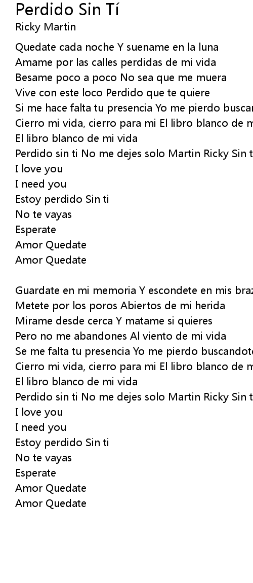 Perdido sin ti No me dejes solo Martin Ricky Sin ti |