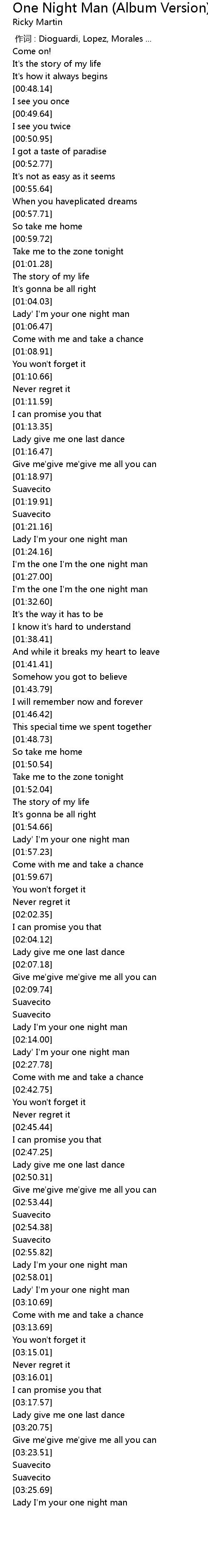 | [01:31.41] | I' m the one I' m the one night man |