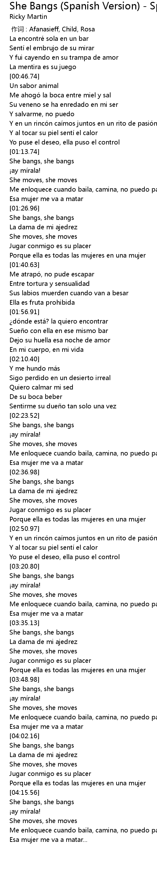 | 歌曲 | She Bangs (Spanish Version) - Spanish Version |