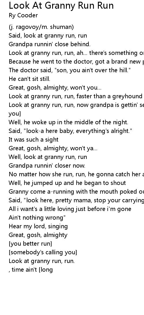 Look at granny run, run, faster than a greyhound bus. [granny, you better run] |