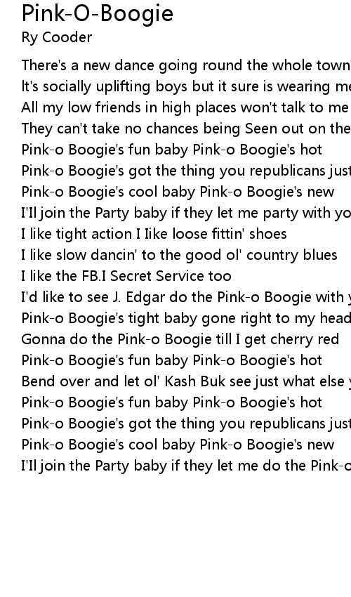 I'Il join the Party baby if they let me do the Pink-o Boogie with you |