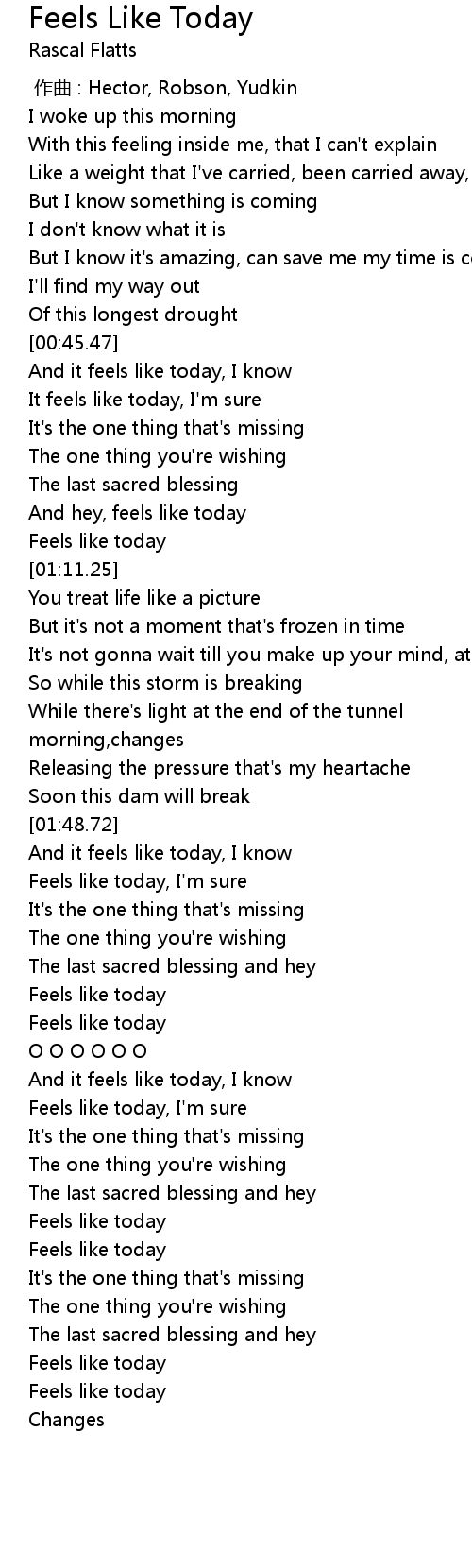 | [00:13.62] | With this feeling inside me, that I can' t explain |