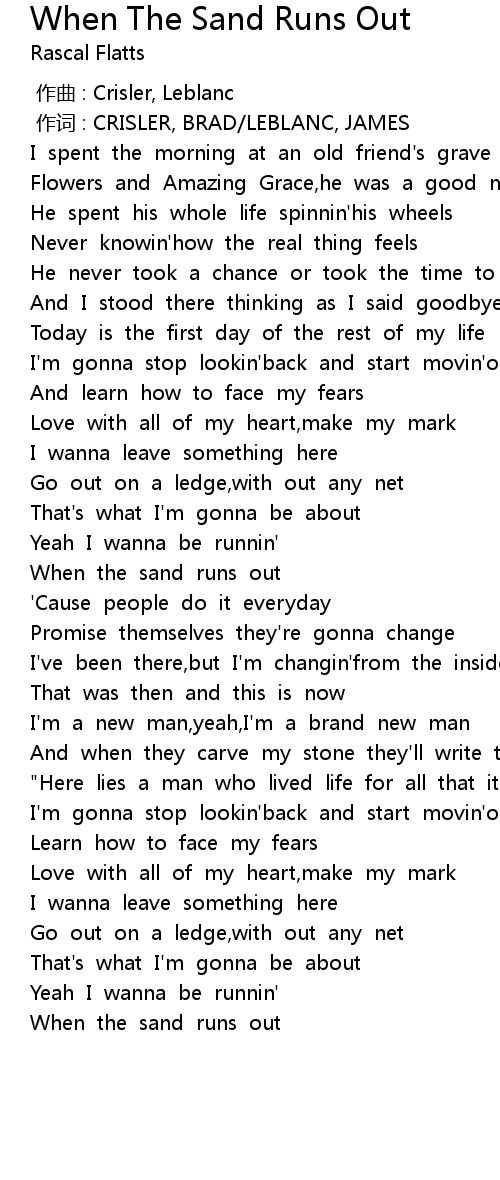 | 歌曲 | When The Sand Runs Out |