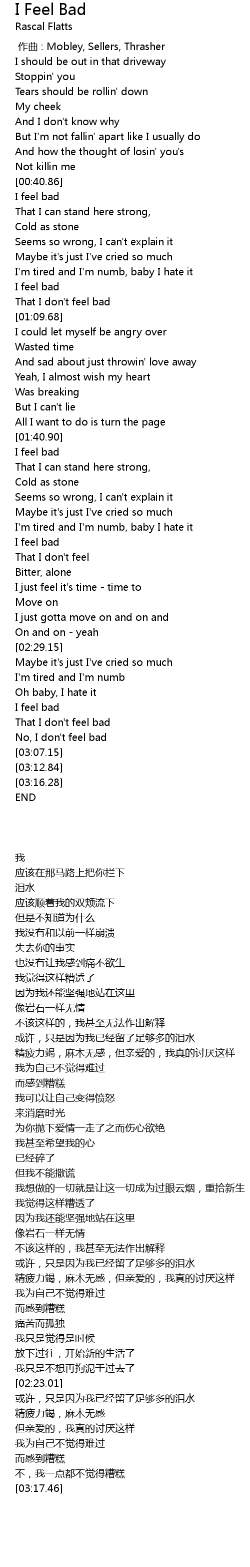 | [01:41.69] | I feel bad |