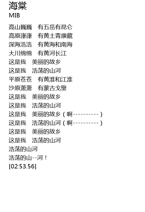 | [02:43.71] | 浩荡的山--河! |