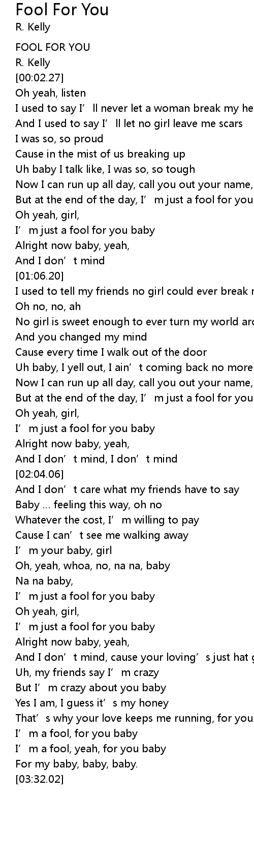 | [01:41.63] | But at the end of the day, I’m just a fool for you baby |