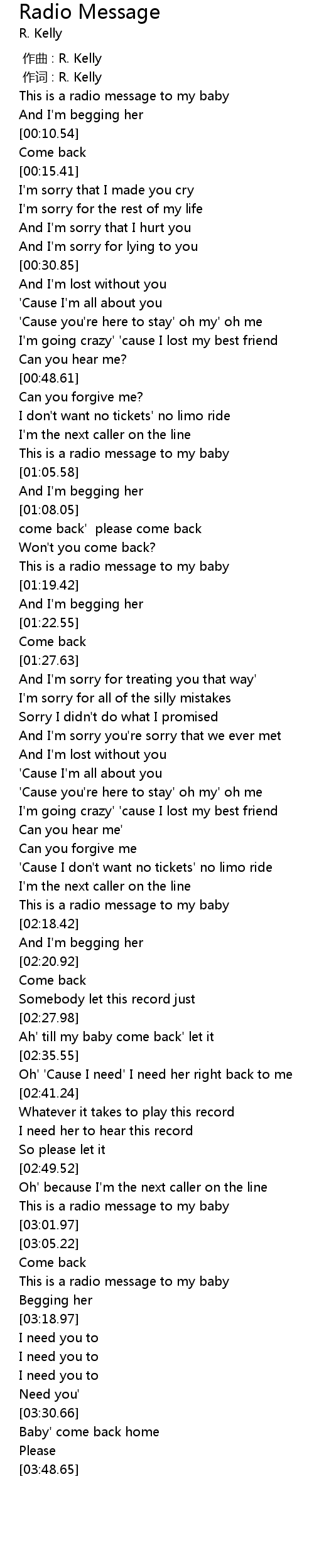 | [03:10.47] | This is a radio message to my baby |