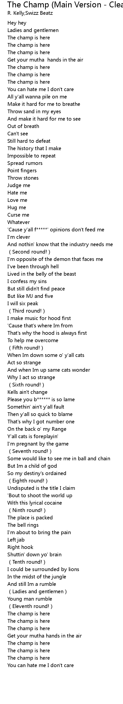 | [00:13.03] | The champ is here |
