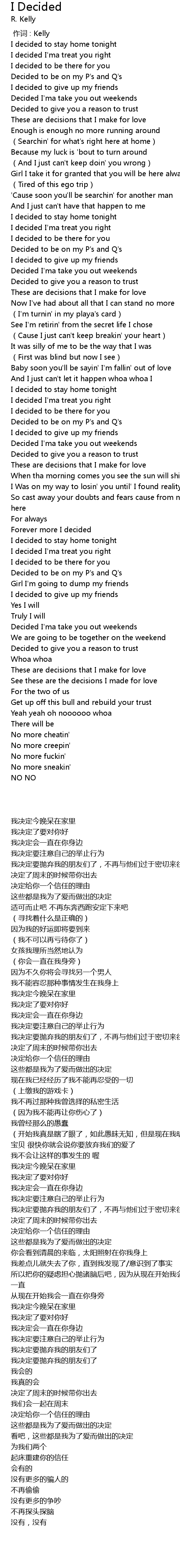 | [02:05.11] | 我决定今晚呆在家里 |