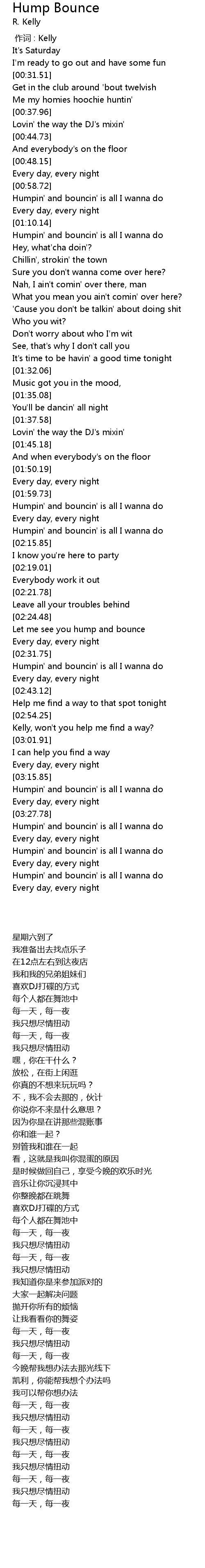 | [02:32.86] | Humpin' and bouncin' is all I wanna do |