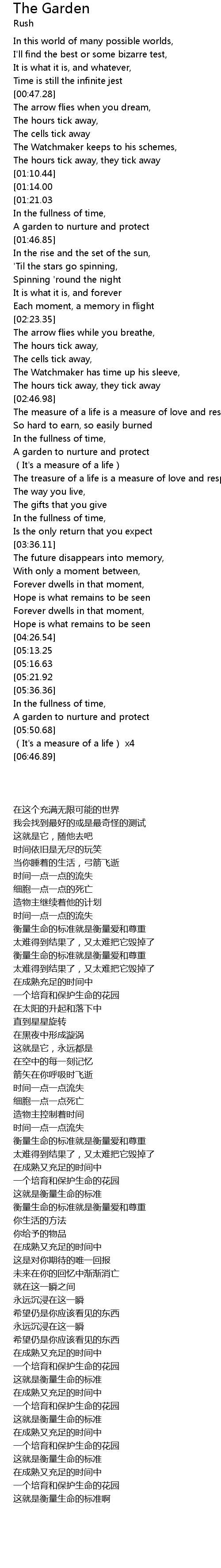 | [05:40.65] | 一个培育和保护生命的花园 |