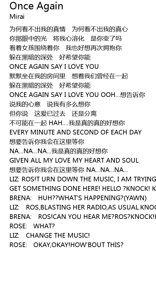 | ONCE AGAIN SAY I LOVE YOU OOH... xiǎng gào sù nǐ | |