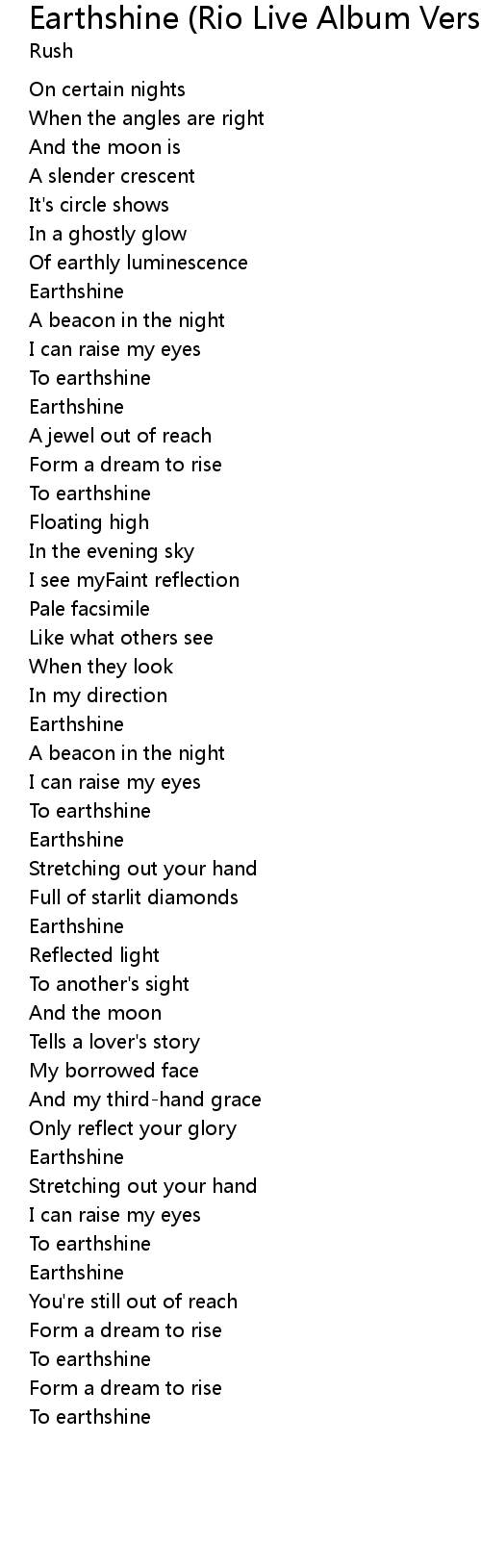 | 歌曲 | Earthshine (Rio Live Album Version) |