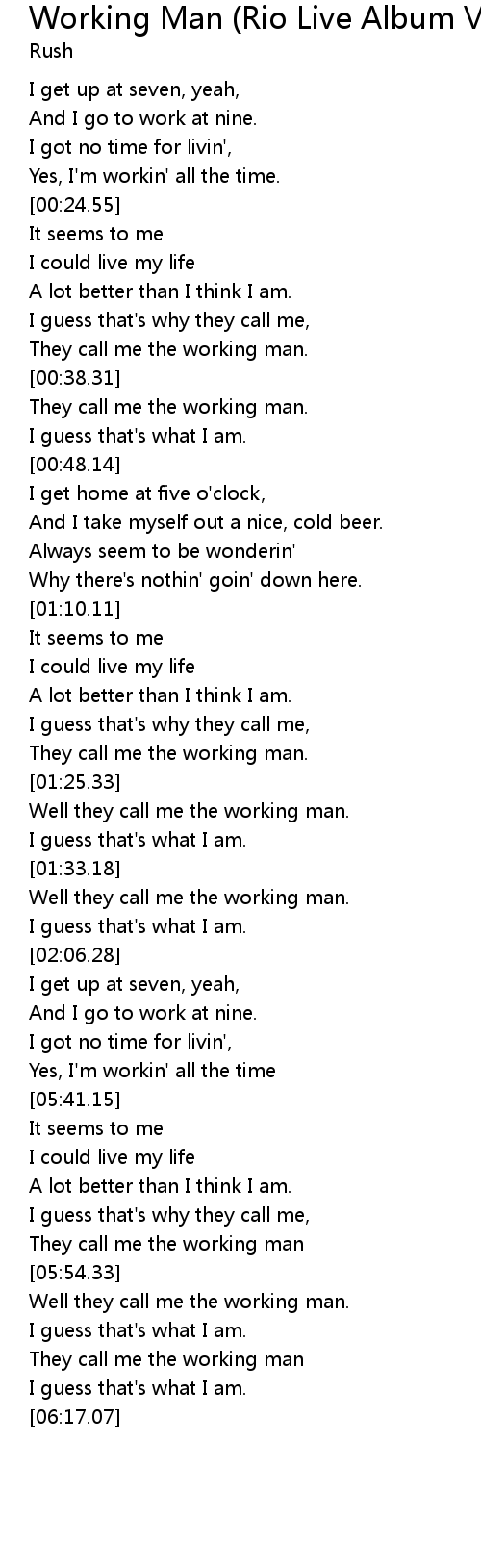 Working Man (Rio Live Album Version) 歌词