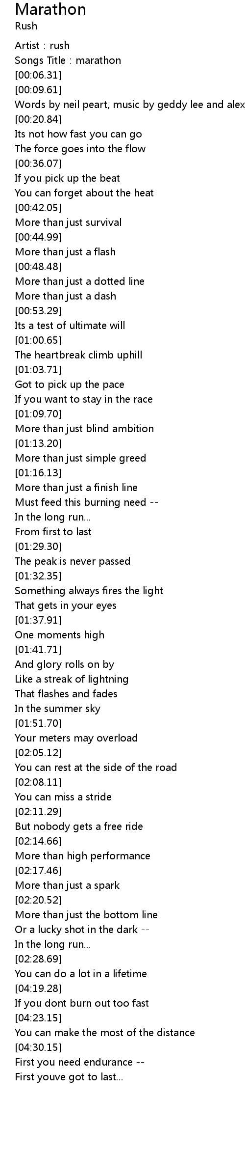 | [00:03.31] | Songs Title:marathon |
