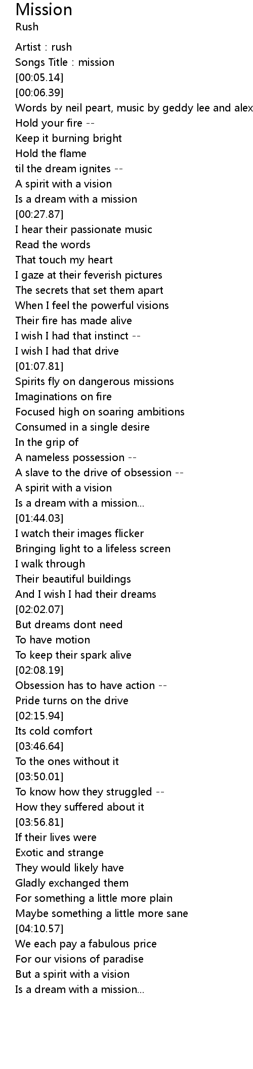 | [00:06.46] | Words by neil peart, music by geddy lee and alex lifeson |